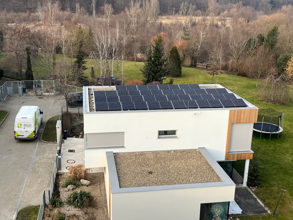 Cílem realizace fotovoltaické elektrárny bylo částečně se osamostatnit od distribuční sítě elektrické energie a především snížit roční spotřebu, která byla tehdy kolem 10 MWh. Odpovědí na tento požadavek byla konfigurace elektrárny s průmyslovým systémem VICTRON ENERGY, který umí maximalizovat vytížení solární energie a efektivně podporovat uživatele v případě potřeby zálohy. Zvolen byl celkový instalovaný výkon 10 kWp s maximalizací využití střechy. K tomuto výkonu byl navržen střídač Victron Multiplus II 5000, který se svým výkonem 3 x 4 kW dostatečně pokryje výkonové požadavky rodinného domu a taky promění všechnu energii vyrobenou ze solárních panelů. Systém doplňuje 6 nízkonapěťových baterií Pylontech US3000c s celkovým výkonem 21.3 kWh.