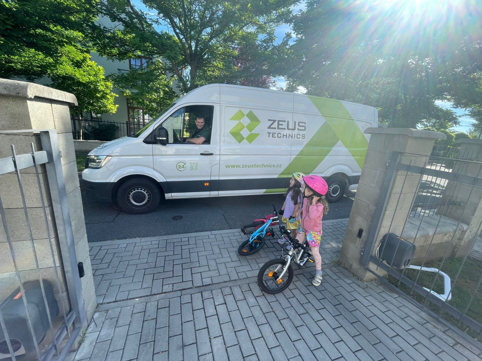 🚐 Dvě malé holčičky stojí před domem a sledují naši firemní dodávku, která právě opouští místo další dokončené instalace VICTRON. Možná netuší, co přesně jsme dělali – ale ví, že jsme přijely „za sluníčkem“. ☀️